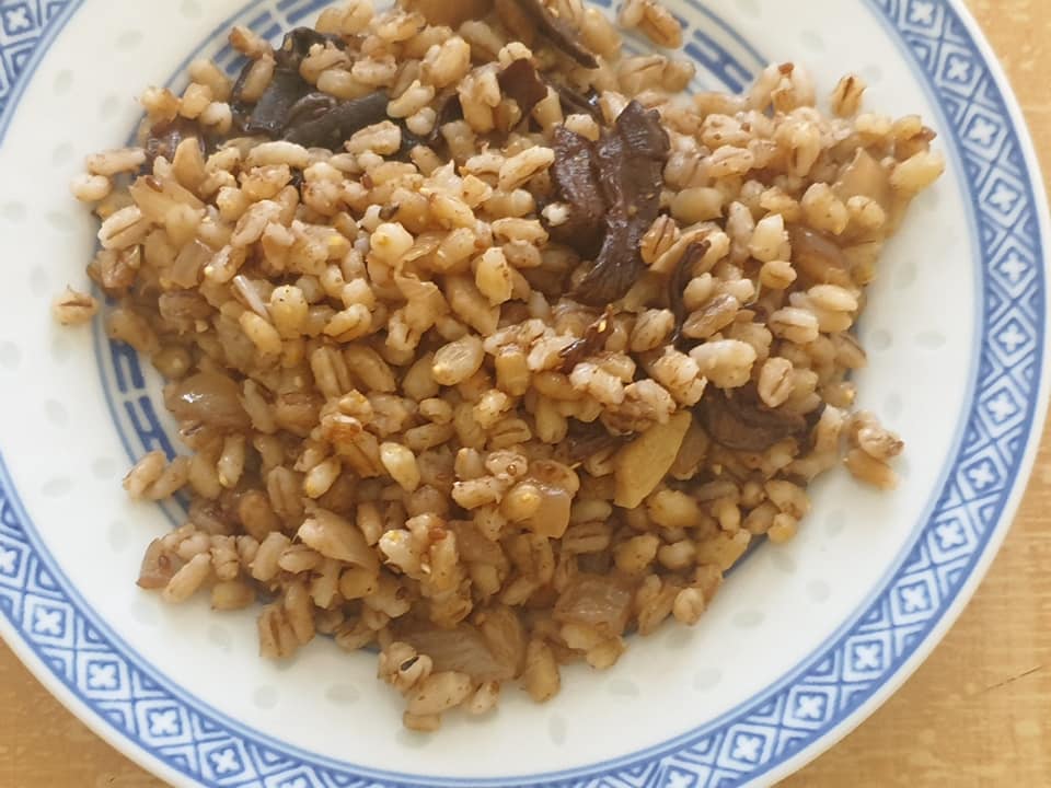 ingredience: kroupy olej nebo sádlo kousek másla cibule sušené houby sůl kmín česnek postup: Na 30 minut namočíme kroupy. Po 30 minutách kroupy slijeme,