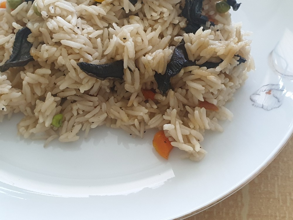 ingredience: rýže sůl, pepř kousek sádla sušené houby (mohou být i čerstvé) zelenina (může být i mražená) postup: V sítku propláchneme rýži a dáme