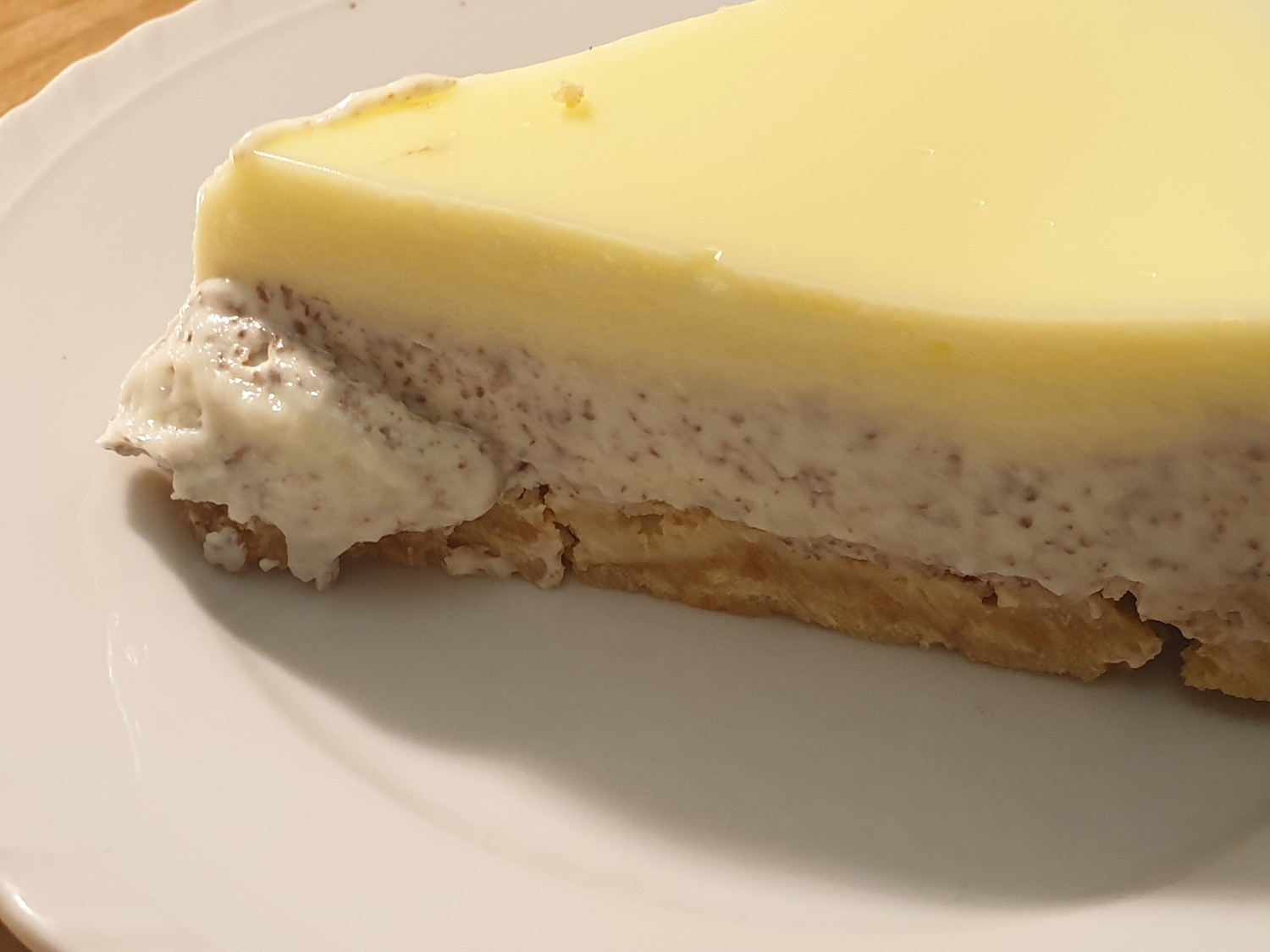 ingredience: máslové sušenky máslo tvaroh čokoláda vaječný koňak mléko puding postup: Máslové sušenky rozsekáme a zalijeme rozpuštěným máslem. Tuto směs promícháme na „těsto“. „Sušenkové