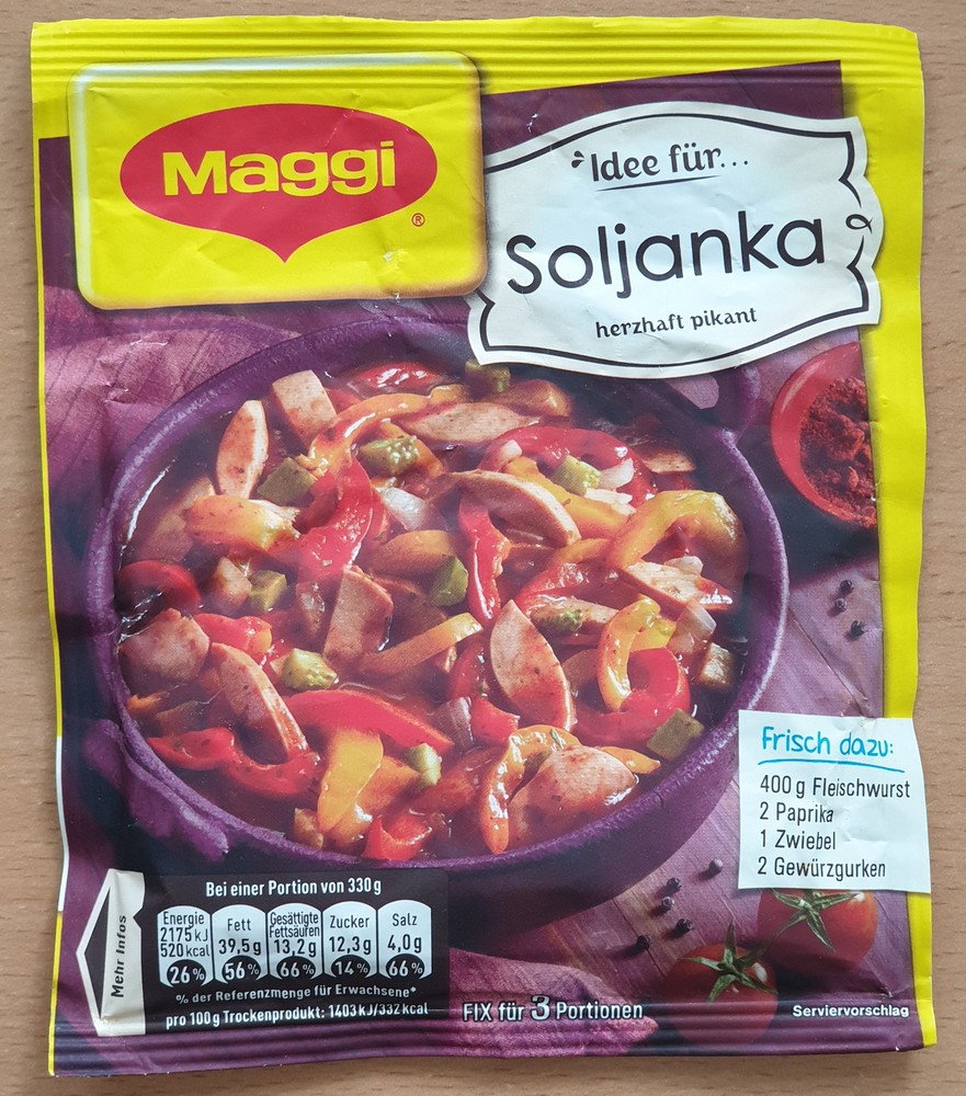 - Finalizujeme rajským protlakem a v teplé vodě rozmíchanou kořenící směsí „Soljanka“.