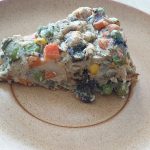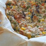 • Celý obsah mísy dáme do pekáčku s pečícím papírem nebo do sádlem vymazaného pekáčku a dáme péct. Hotová nádivka je na okrajích pekáčku zlatá.