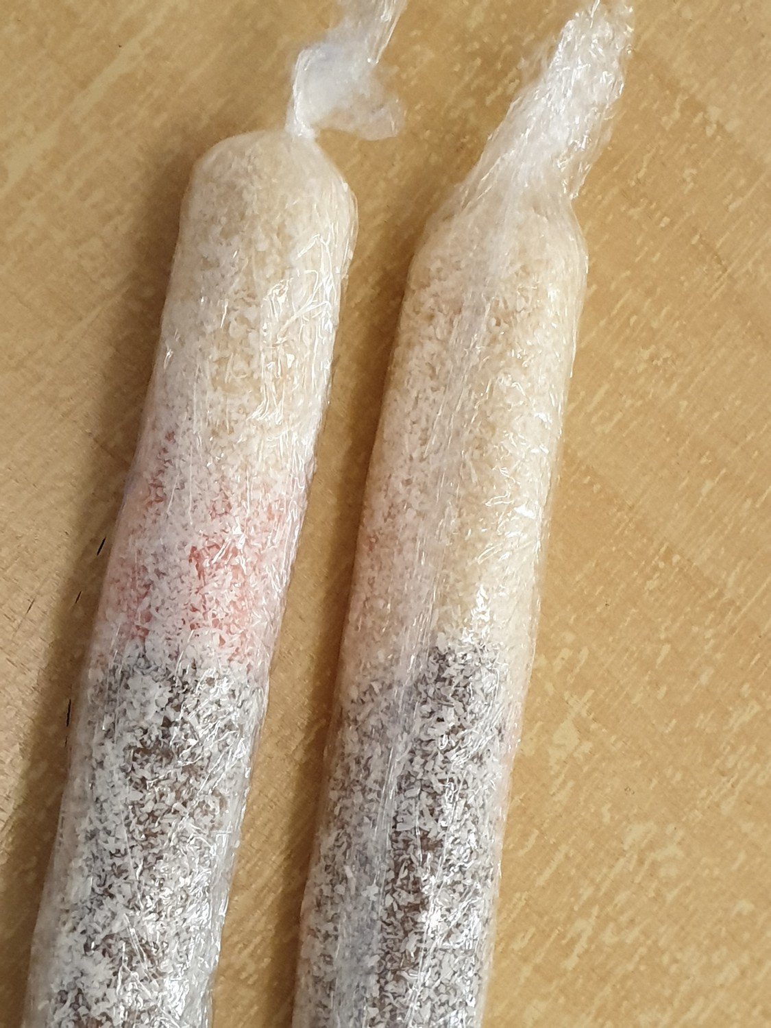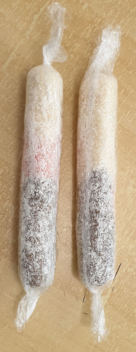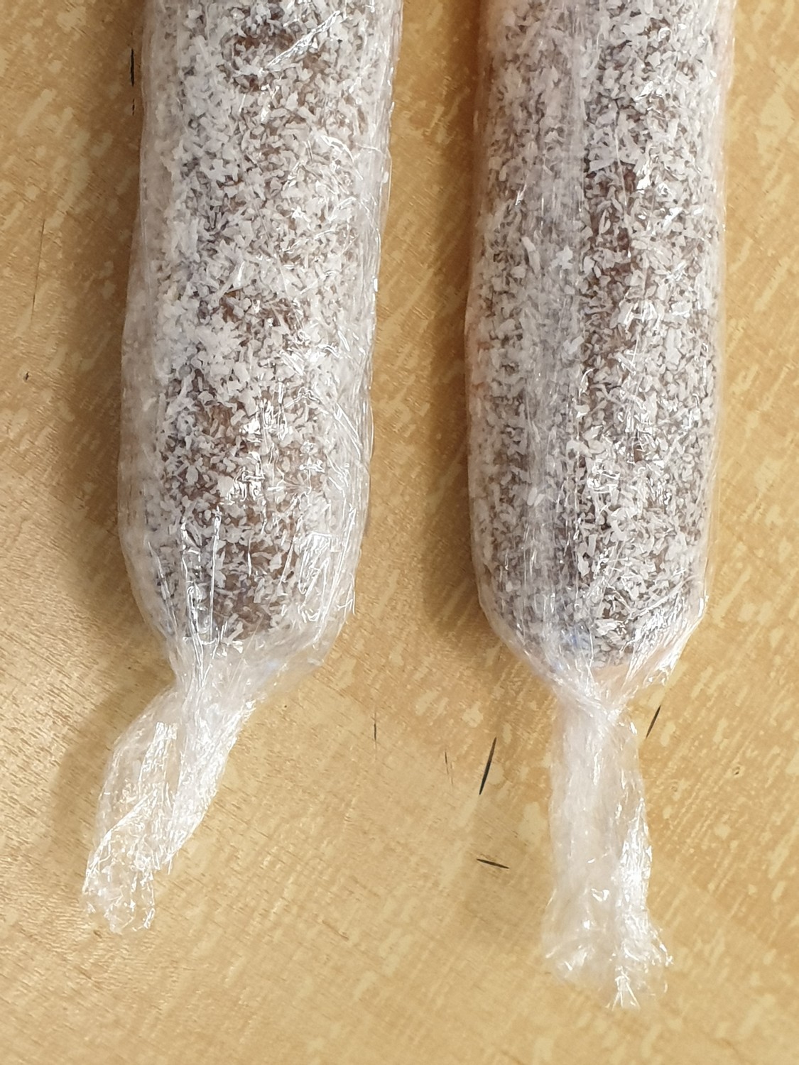 - Vyválíme váleček, který obalíme ve strouhaném kokosu.