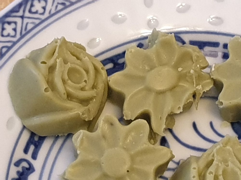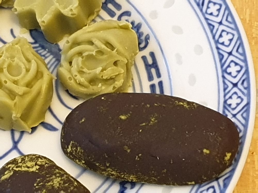 - Po vyklopení z formiček posypte čajem matcha.