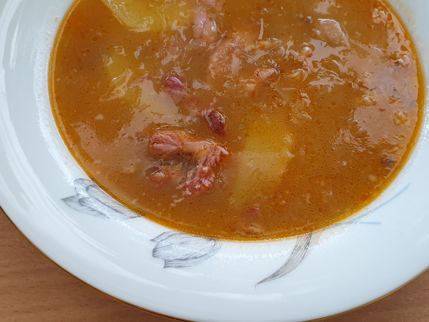 Ingredience: uzená žebírka voda sůl, kmín, paprika, pepř brambory kyselé zelí hladká mouka Postup: Do hrnce dáme vařit uzená žebírka. Pokud je nevaříme