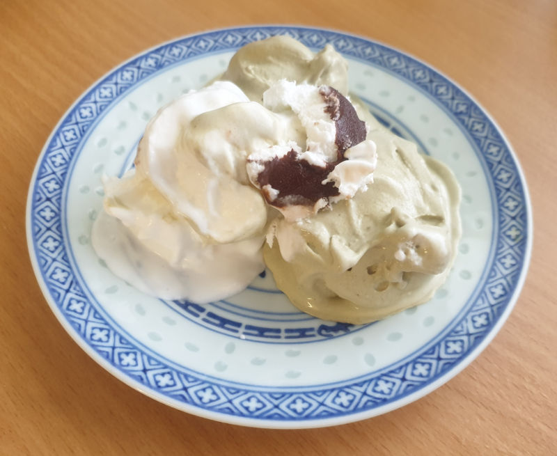 1 ks vanilkového nanukového dortu 1-2 pol. lžíce čaje matcha 2 pol. lžíce citronové šťávy 1) Z nanukového dortu odeberem čokoládu (nahoře ve zdobení). Necháme