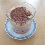 - Proslazené ovoce dáme do poháru nebo misky a zalijeme teplým (ne horkým) pudingem.