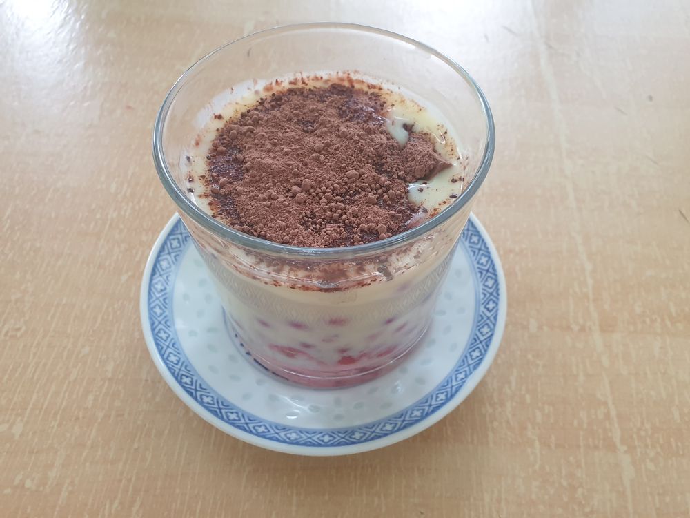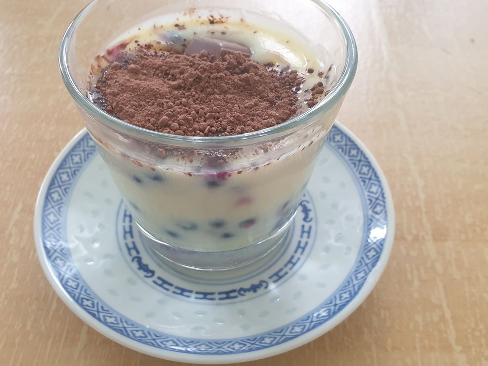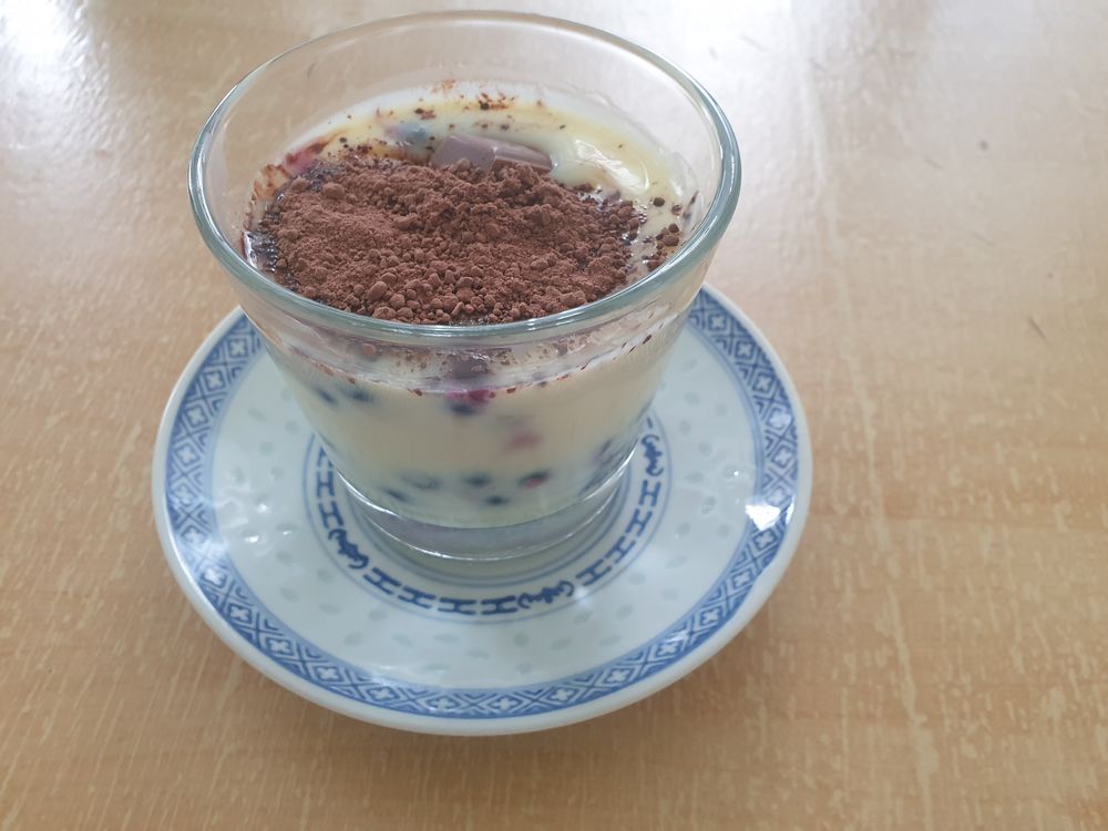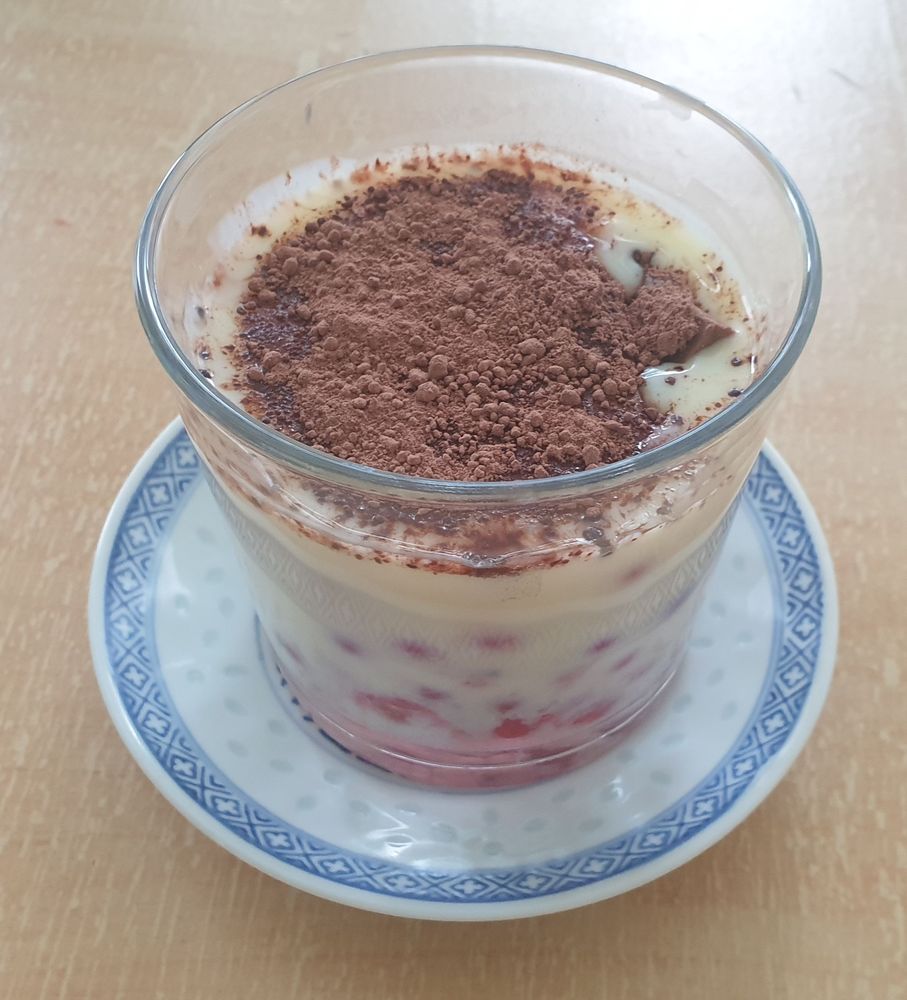 - Proslazené ovoce dáme do poháru nebo misky a zalijeme teplým (ne horkým) pudingem.