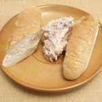 - Do mísy nakrájíme měkký salám (zbytky měkkých salámů).