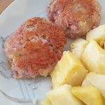 - Vytváříme placičky, které obalíme. Buď v trojobalu nebo pouze ve strouhance.