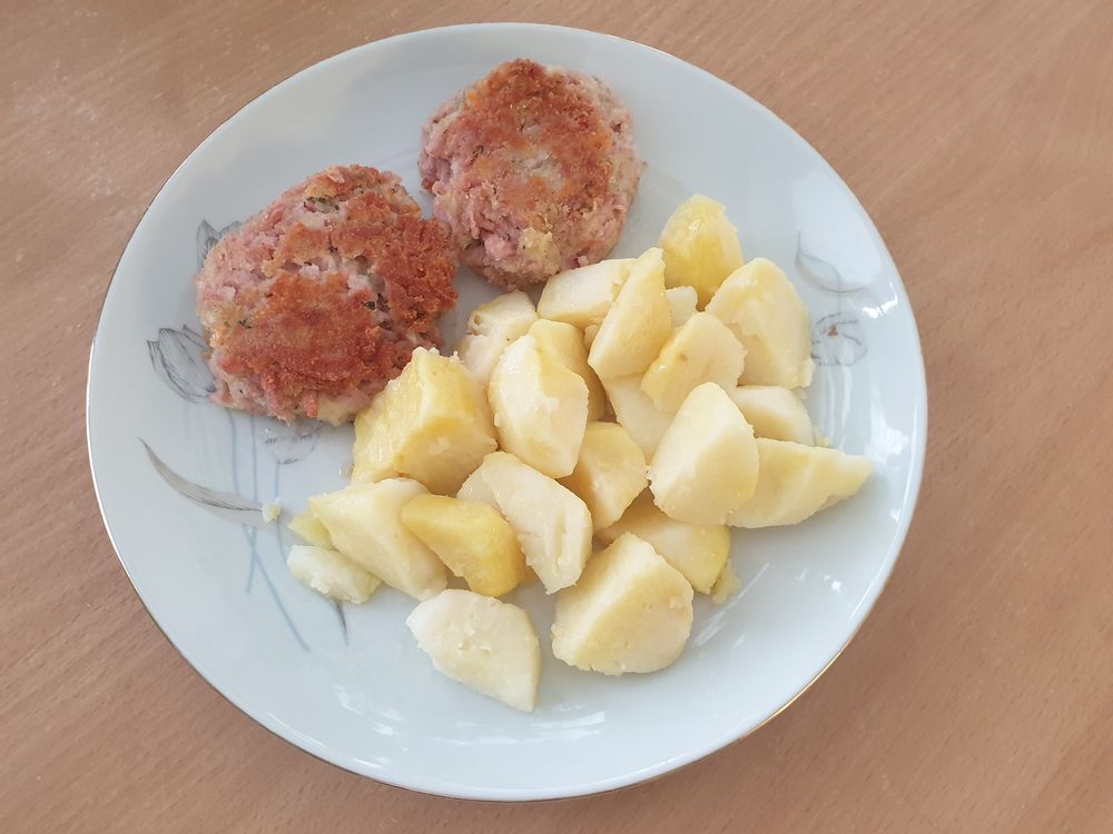 - Vytváříme placičky, které obalíme. Buď v trojobalu nebo pouze ve strouhance.