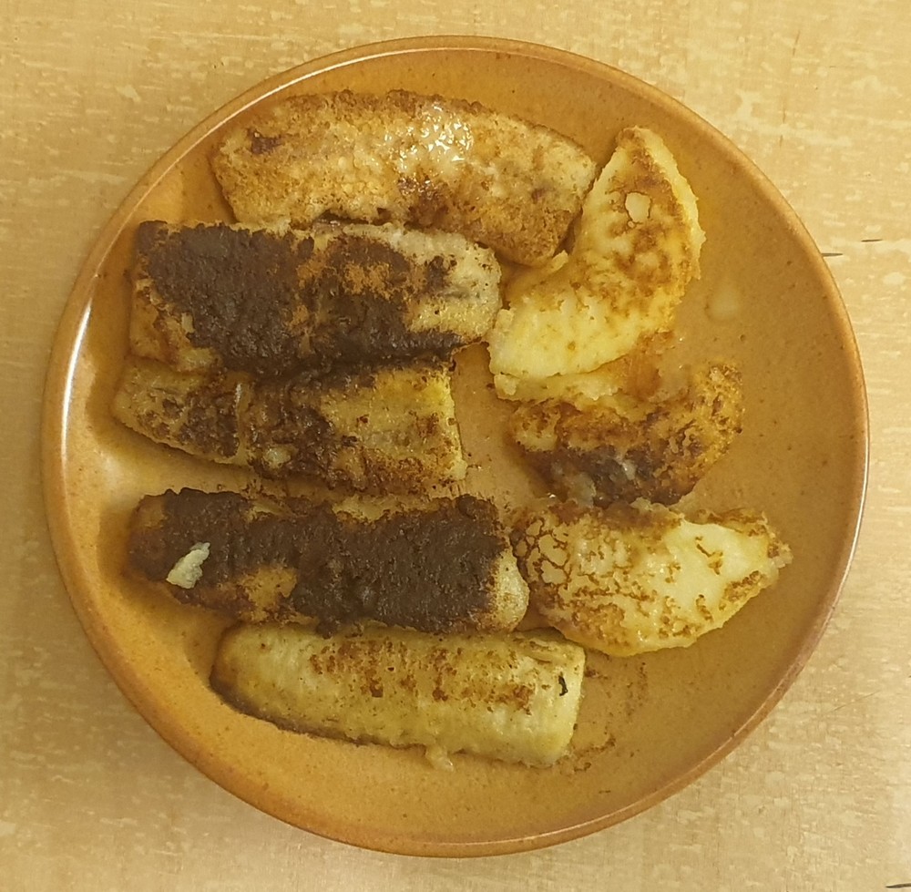 - Nakrájené banány obalíme v těstíčku a osmažíme.