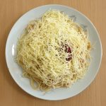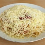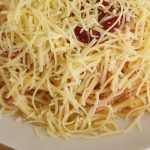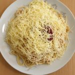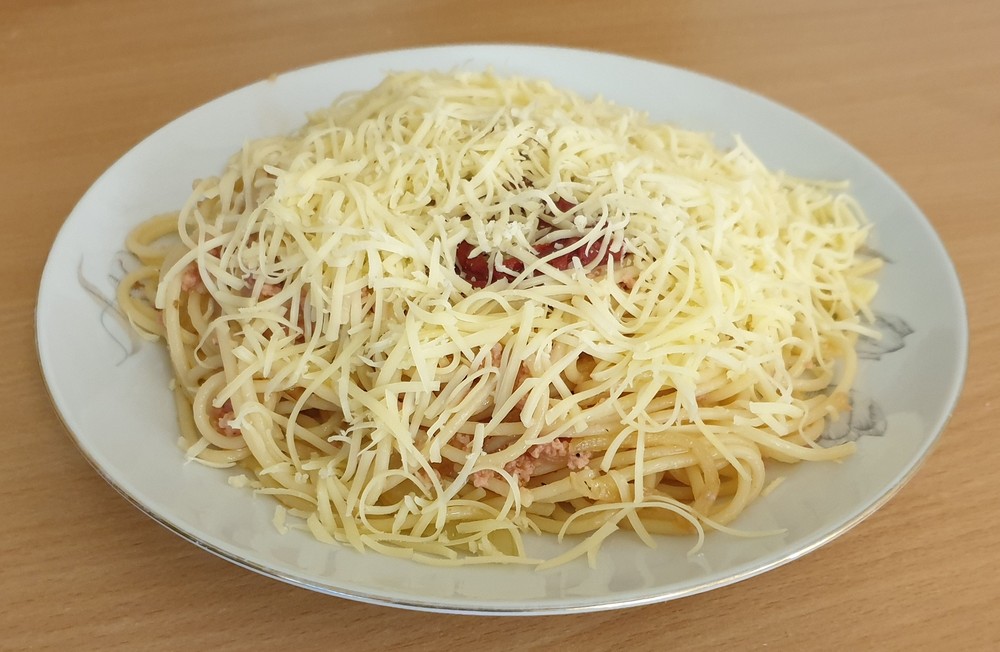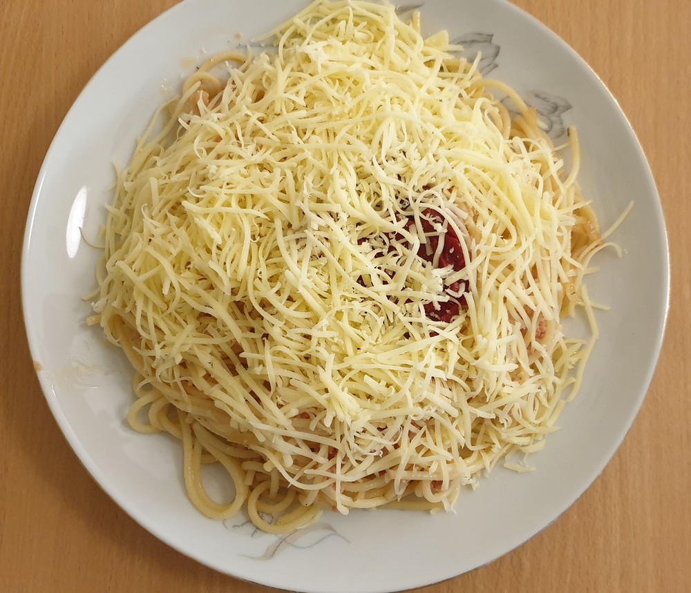 Nandáme špagety, posypeme sýrem a dle chuti přidáme rajský protlak nebo kečup. Já dávám přednost rajskému protlaku. Ale každému dle jeho chuti. 😉