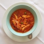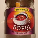 Kousek masa (mohou být i různé druhy) osmahnem. Přidáme zeleninu, danou sklenici boršče a cca. 550 ml vody. Krátce povaříme. Nakonec přidáme trochu kysané smetany nebo šlehačky.
